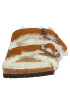 Anatomically shaped cork-latex footbed with genuine shearling lining
