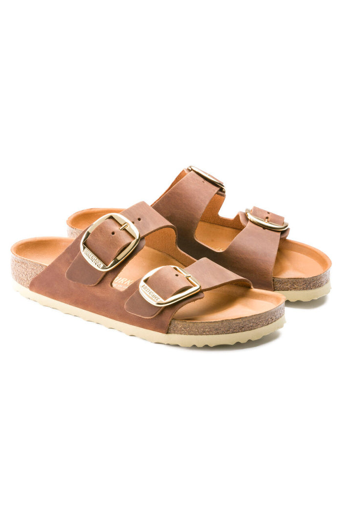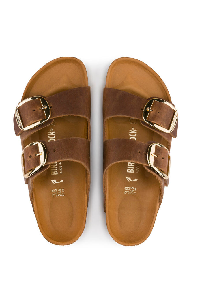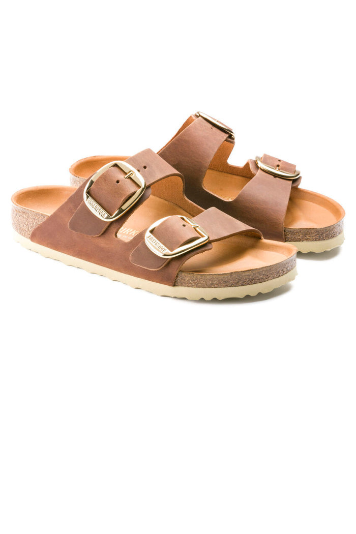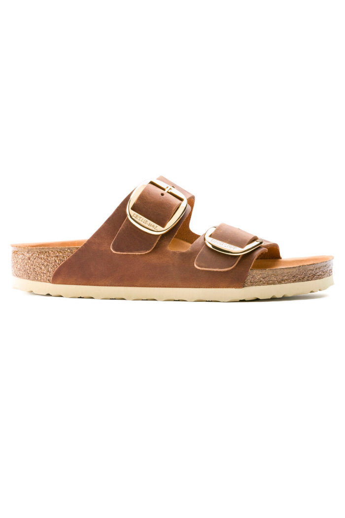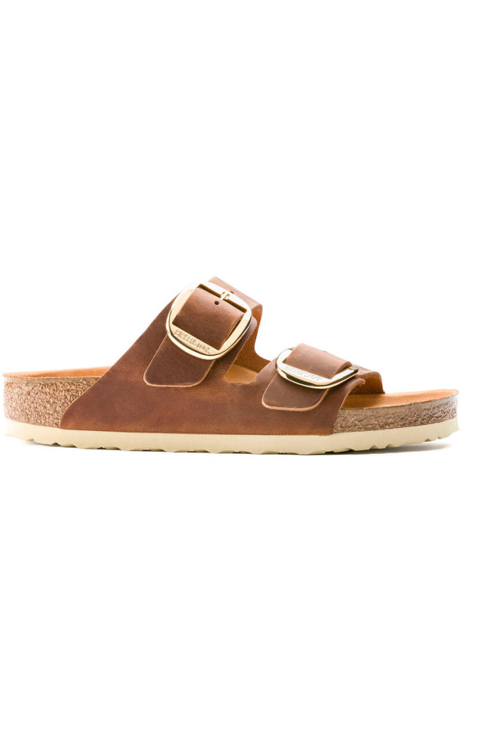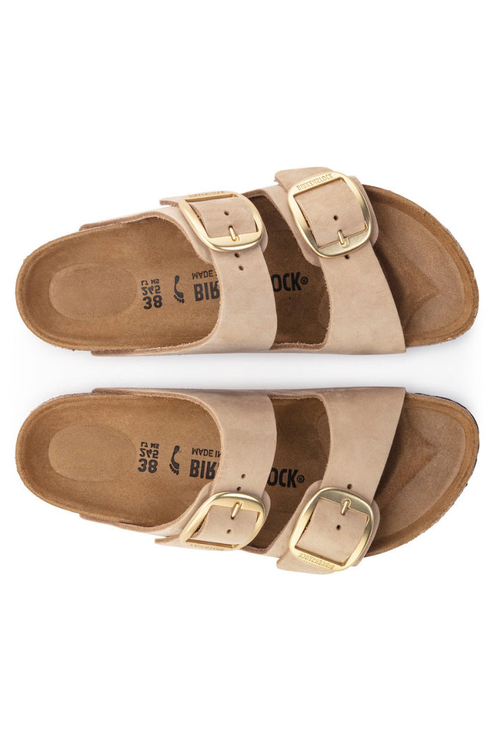 The legendary two-strap design from BIRKENSTOCK with amplified buckle accent - the Arizona Big Buckle. The Big Buckle version features a large, elegant buckle creating a bold yet minimalist design. Shown in oiled nubuck leather.