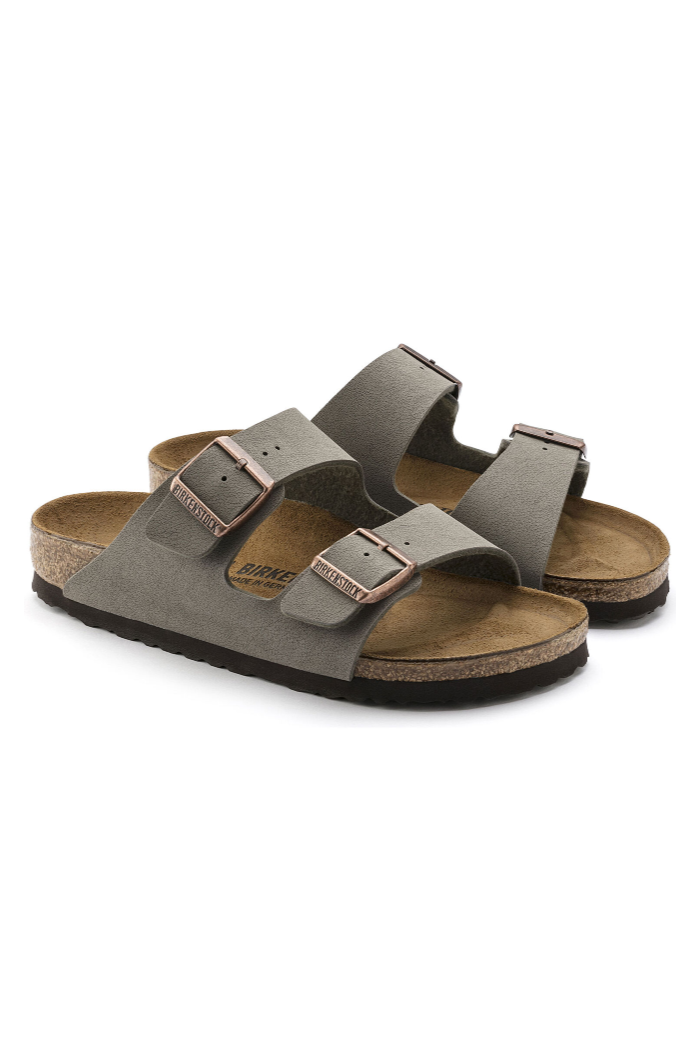 Birkenstock Arizona Birkibuc Regular Width in Stone