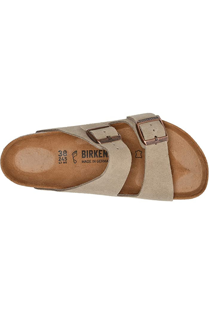 BIRKENSTOCK ARIZONA HARD FOOTBED MEDIUM/WIDE WIDTH IN TAUPEAn icon of timeless design and legendary comfort, the Arizona sandal has been defining style since 1973. Classic, velvety suede gives the laid-back look that every season, any style appeal. Complete with legendary BIRKENSTOCK design elements, like a contoured cork-latex footbed for the ultimate in support.