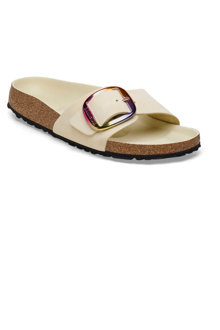 An icon since 1963, the Madrid sandal redefined the slip-on look with a single strap. This season, an oversized buckle accessorizes soft nubuck leather for any occasion. Equally sophisticated and supportive, the style rests on the contoured footbed it first made iconic.
