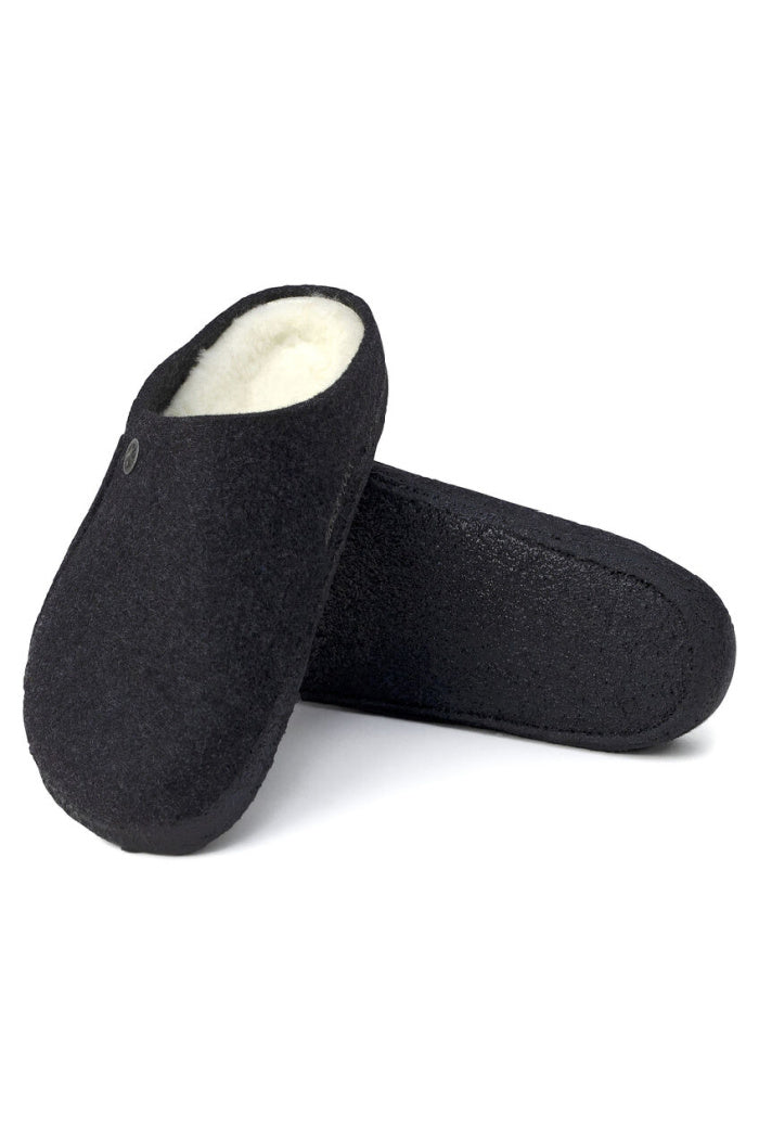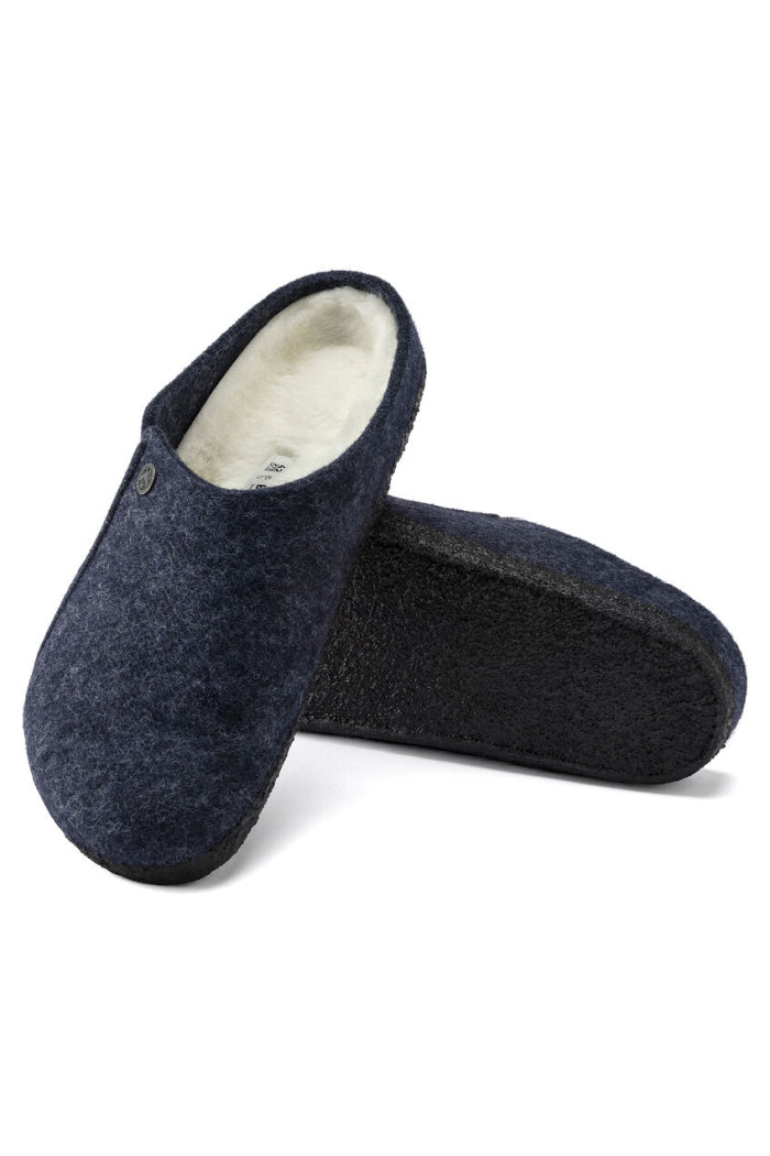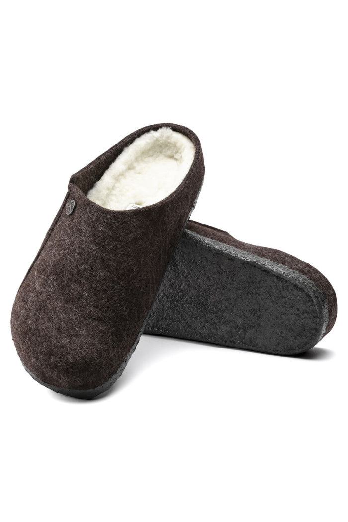 The BIRKENSTOCK Zermatt is our first true slipper. It features our iconic cork latex footbed, and to keep you extra cozy, it’s fully lined in genuine shearling that will keep your feet warm all winter long. The upper consists of soft genuine wool.