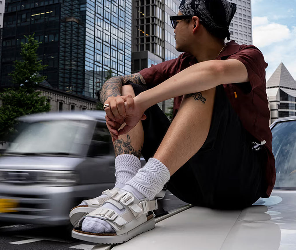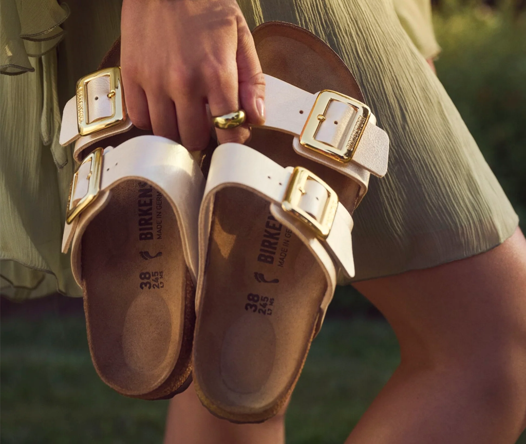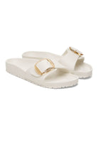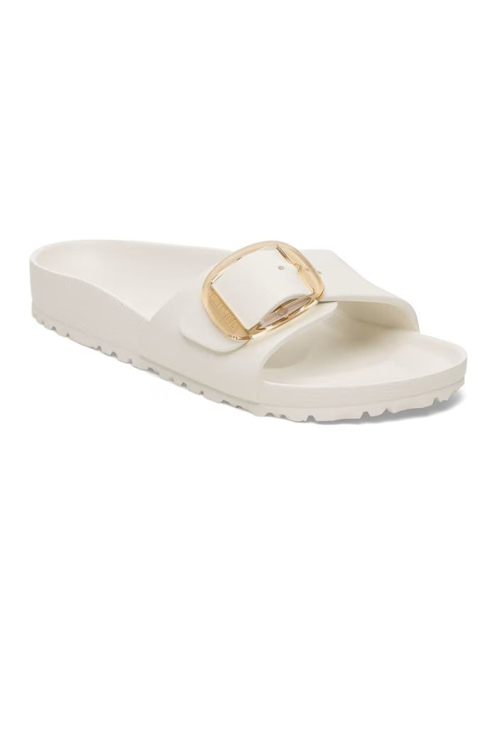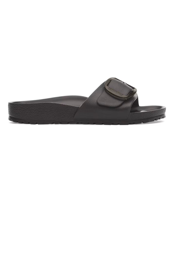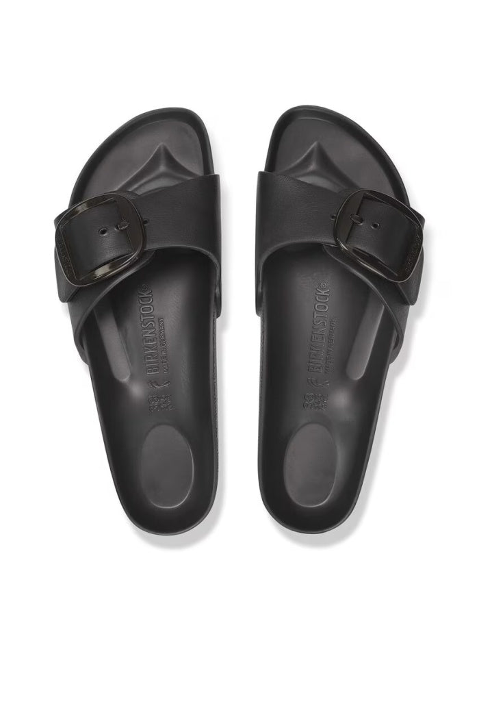 This is a new and modern interpretation of the BIRKENSTOCK classic Madrid. This version features our popular Big Buckle made from a stainless synthetic material and makes an impression with its durability and minimalist design. Modeled on the cork sandal, it is made from the ultra-lightweight and highly flexible synthetic material EVA. The high-quality, odor-neutral EVA has been tested for harmful substances and combines numerous positive attributes: it is very light, highly elastic, shock-absorbent, water-resistant, and skin-friendly.