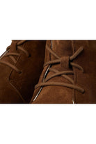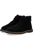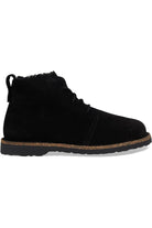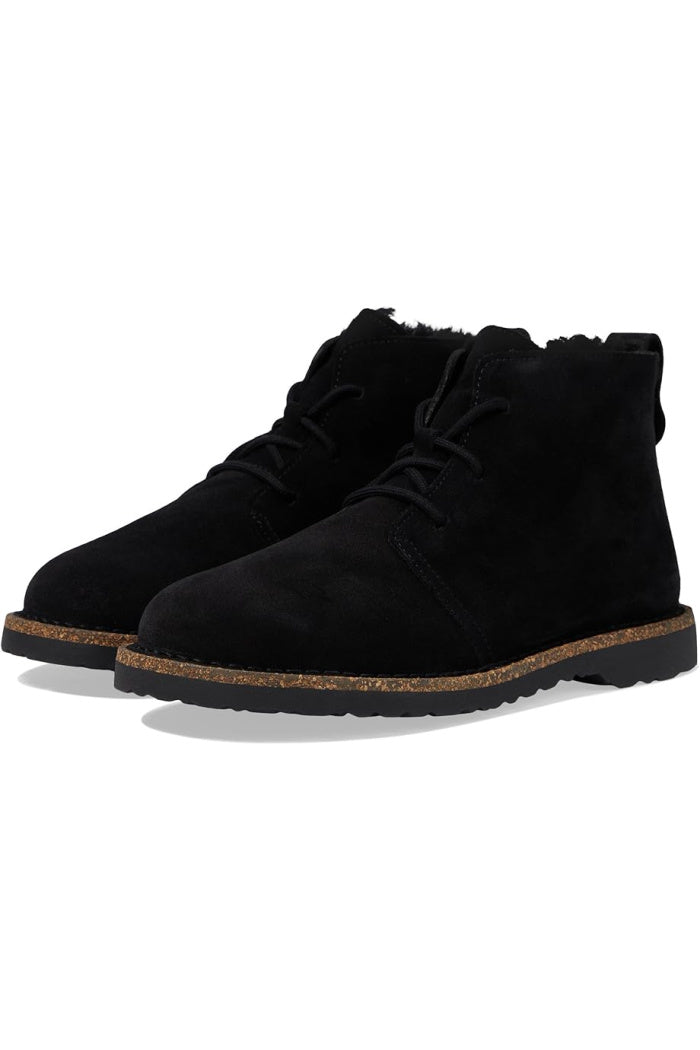 This stylish new chukka boot, from Birkenstock®, features a shearling lining for cozy comfort. These lace-up closure boots come in a round toe silhouette, crafted from a suede upper and a cork footbed covered with a layer of warm, comfy shearling.