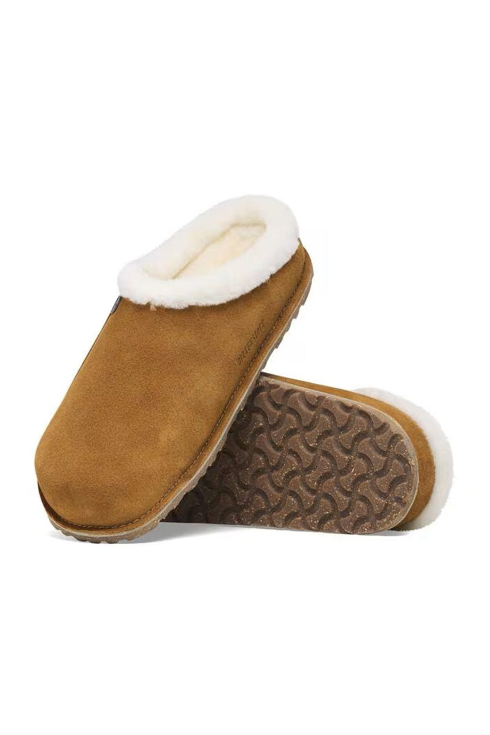Meet the ultimate slipper - The classic Zermatt is now available in a cozy premium design. This version features a genuine shearling lining and an rubber outer sole, making it ideal for lounging indoors & outdoors. All the comfort of a slipper with the BIRKENSTOCK support you've come to know. The upper is made from soft suede. The perfect holiday gift for any BIRKENSTOCK fan.