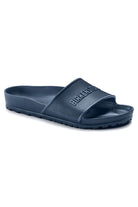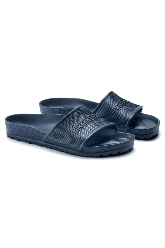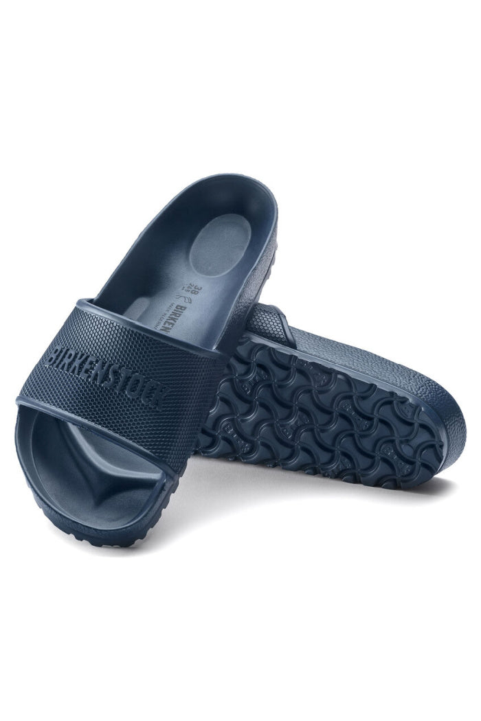 The BIRKENSTOCK Barbados is a sporty slide design with an embossed upper and logo lettering. Modeled on the cork sandal, this sandal is made from one piece of light, flexible and waterproof molded EVA.