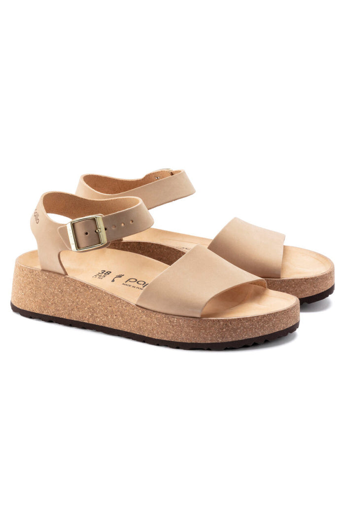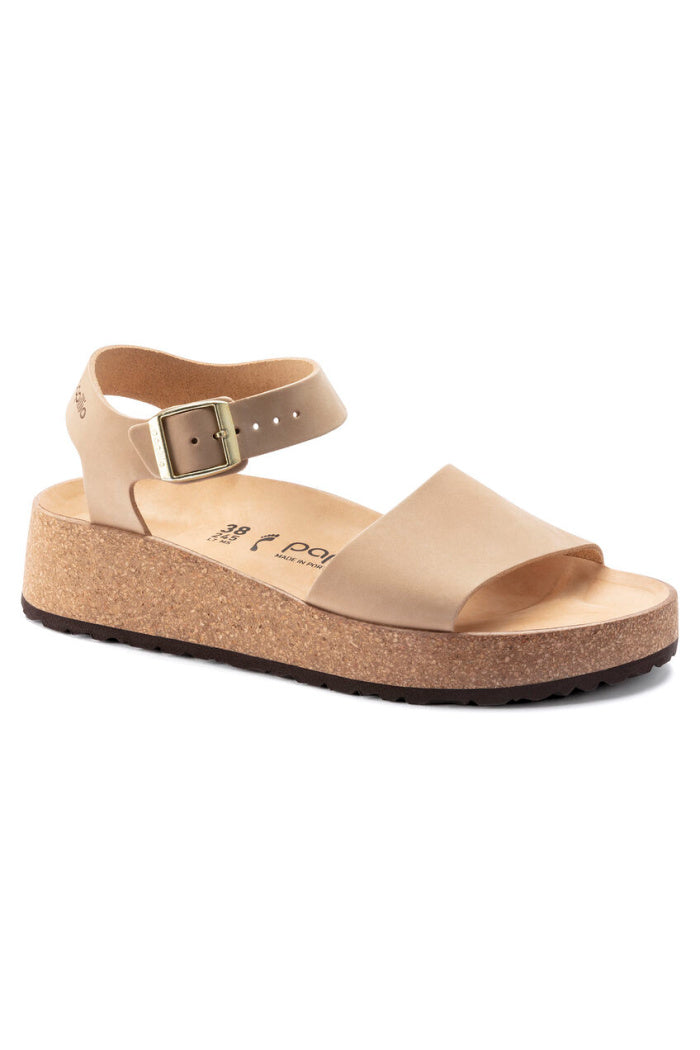 Introducing the Glenda from Papillio. A trendy new back-strap flatform sandal. Featuring the signature comfort you've come to know, with a lift. From sundresses to jeans - wear these sandals with everything. The upper is made of nubuck leather.