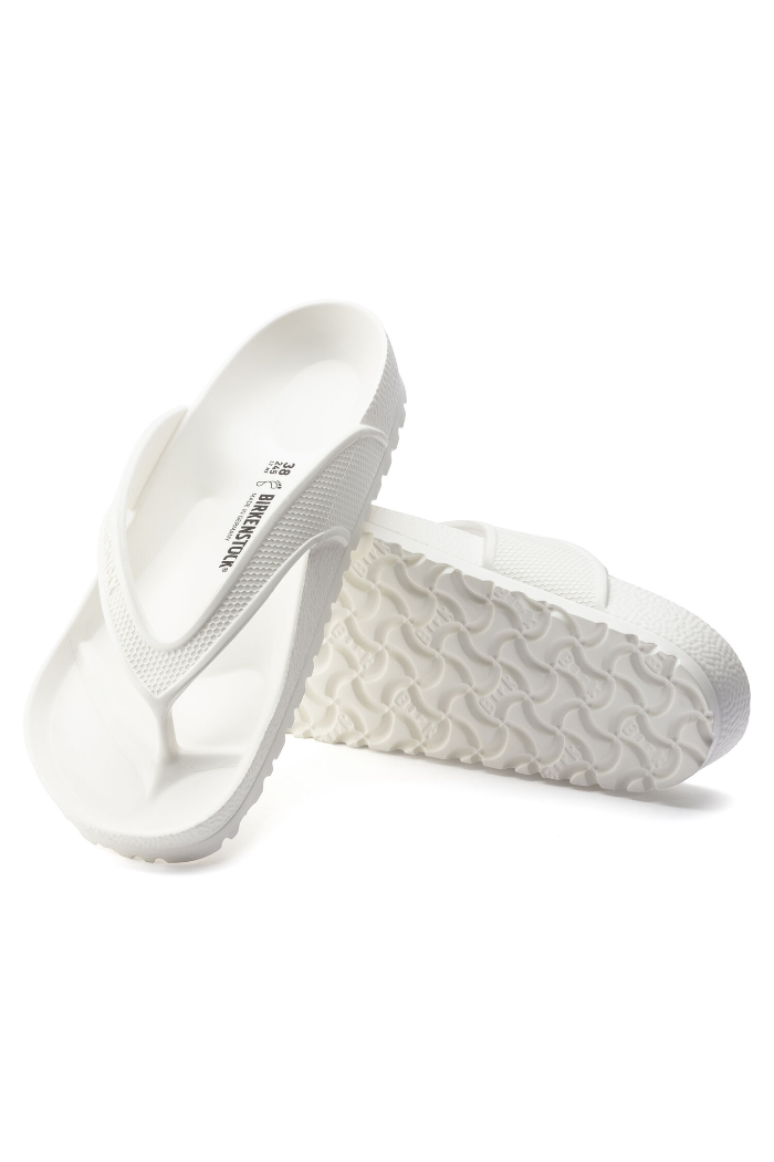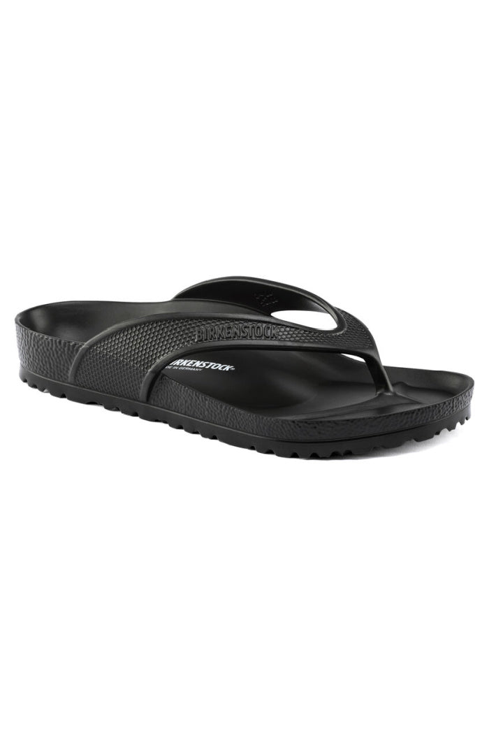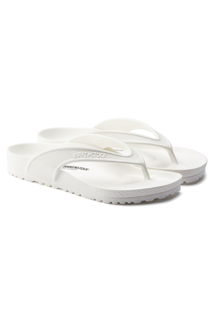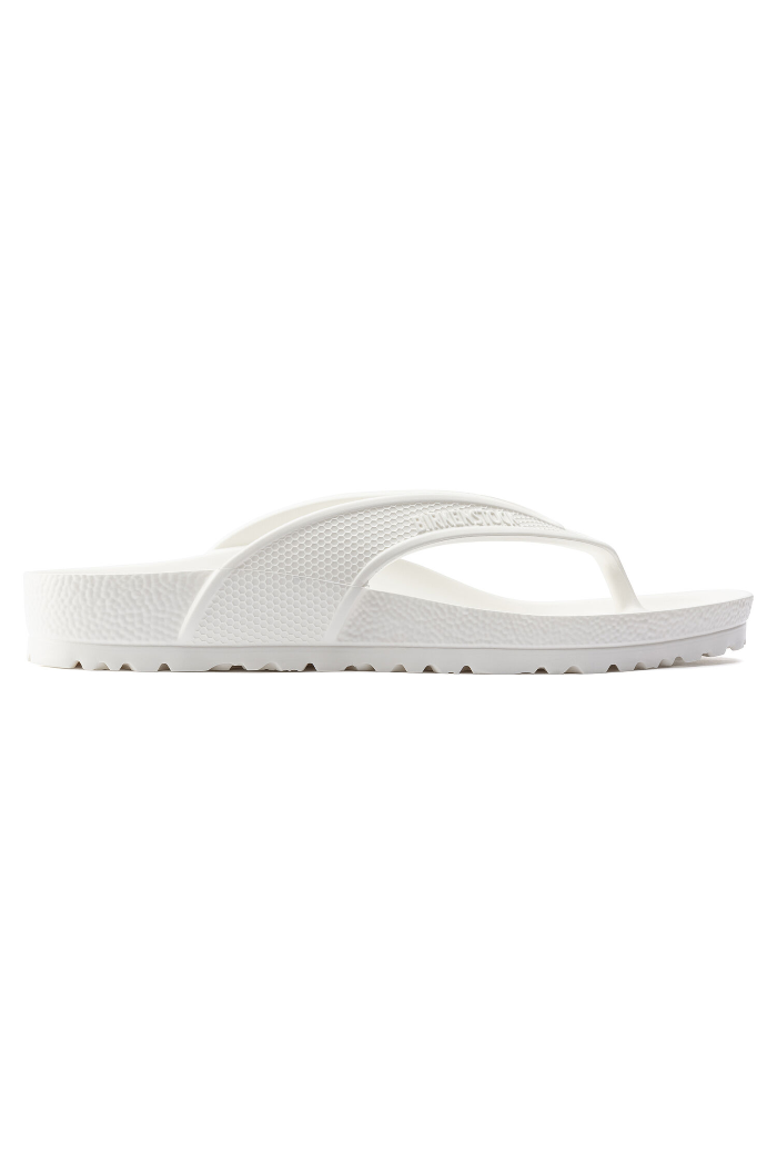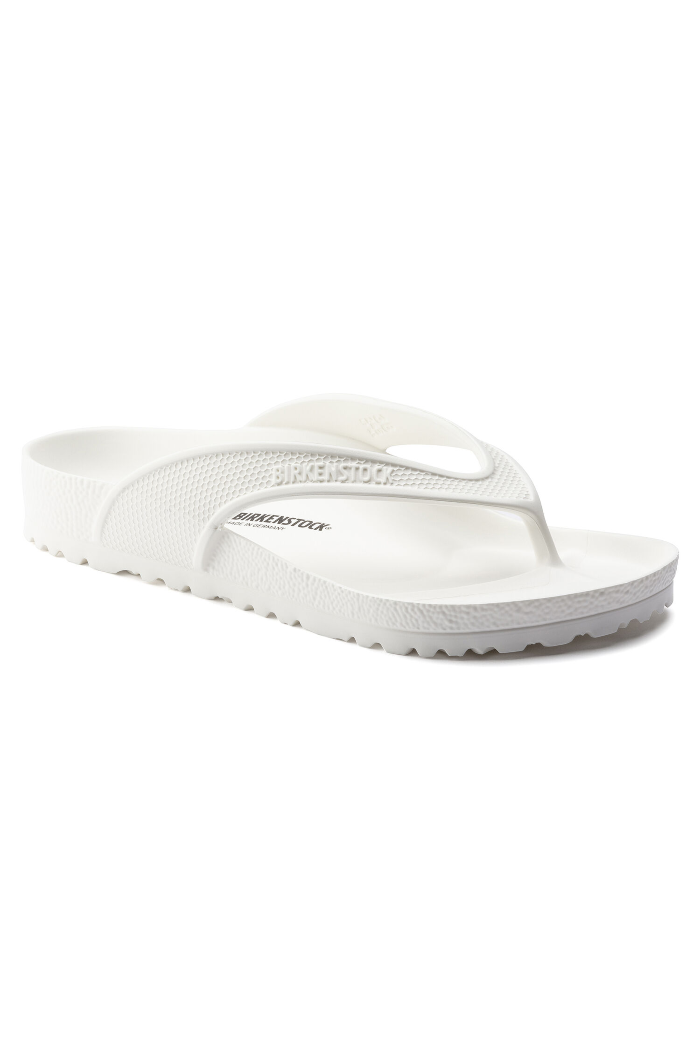 The BIRKENSTOCK Honolulu is a sporty thong sandal with embossed straps. Modeled on the cork sandal, this sandal is made from light, flexible and waterproof EVA.