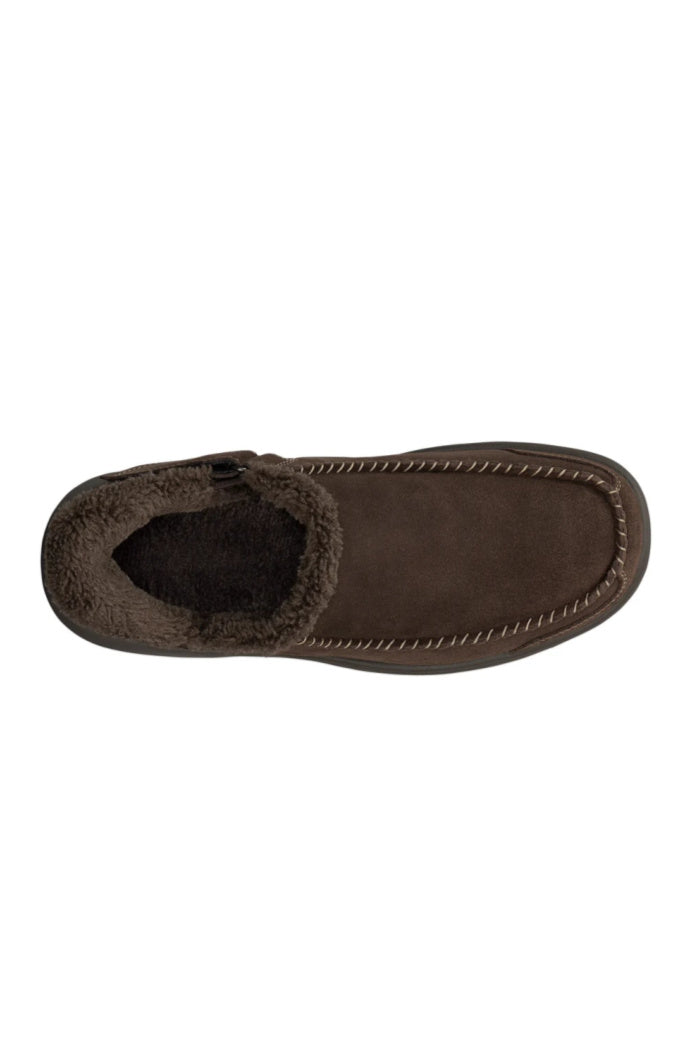 This tailored suede slipper-shoe offers full foot protection indoors and out. Put these on without bending down, thanks to our patented hands-free design. Lined completely in faux fur and featuring the supportive, easy-walking technology of the Ortho-Cushion™ System, Vito keeps your feet warm and well supported for more pain-free hours doing this and that, anywhere.