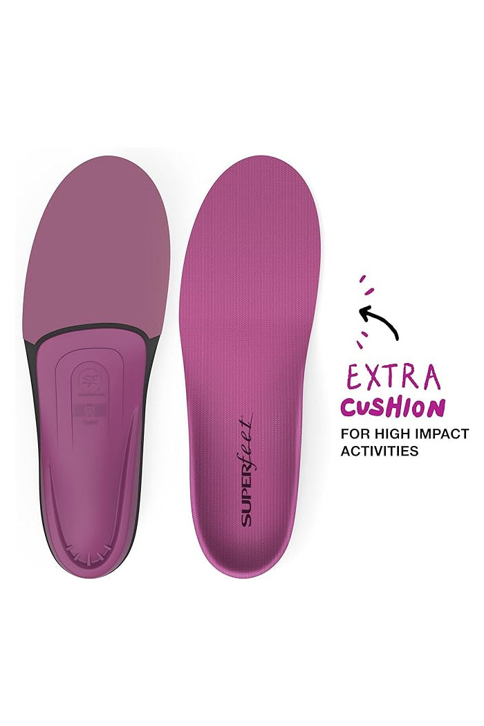 With a slimmer heel and an arch length to fit the proportions of the female foot, and a cushioned, shock-absorbing foam pad at the forefoot, Superfeet BERRY shoe inserts were designed for women who live on their feet. Made to replace the removable sockliner in roomy to moderate-fitting athletic footwear. Trim to fit your shoe size.