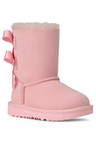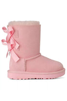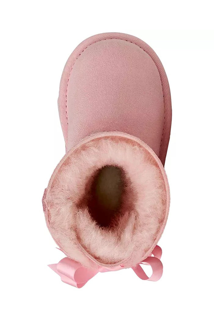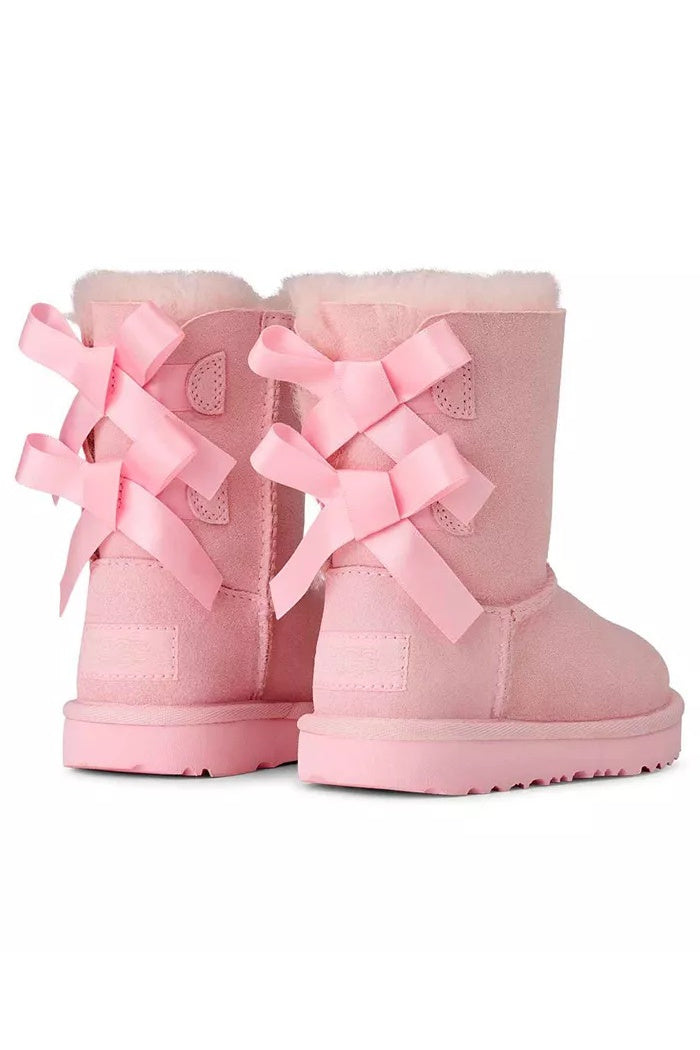 Plush sheepskin helps keep tiny toes warm and cozy while pretty bows complete a sweet look in these Kids Bailey Bow II booties by UGG®.