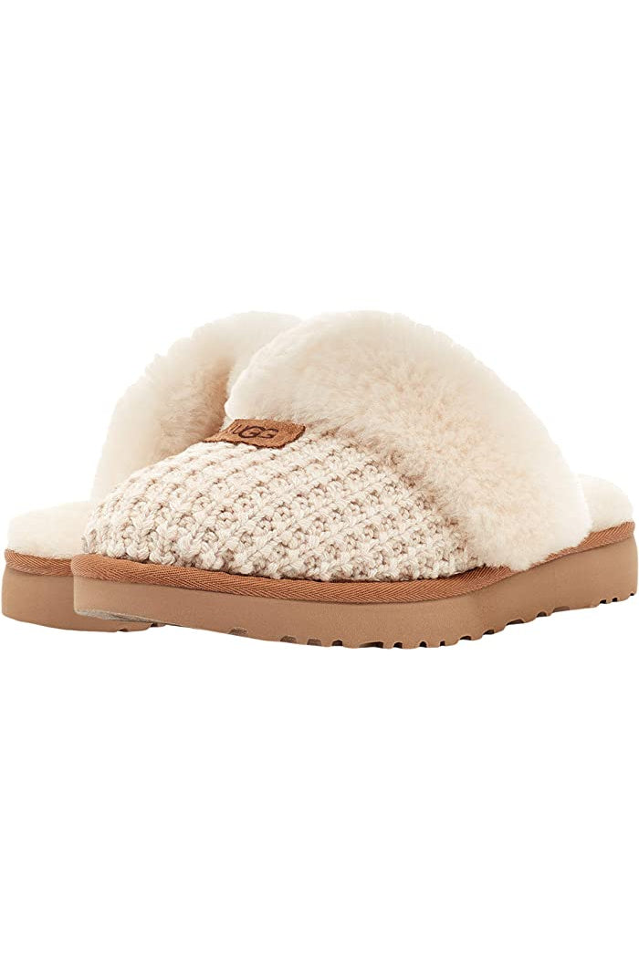 A soft, sweater-knit upper and lush sheepskin lining add softness and style to this outdoor-friendly slipper. Featuring a fluffy collar and our super-light, durable sole, it slips on with Saturday sweats, faded denim, or your favorite knit pieces.