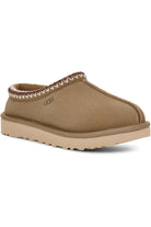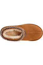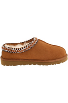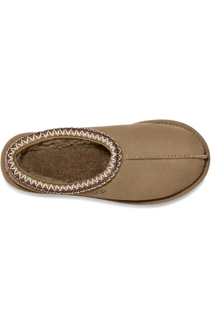 A slipper for all occasions, our best-selling Tasman features the same light, durable outsole as our Classic boot, so you can wear it both indoors and out. Lined with plush natural wool, it’s crafted from soft suede with an embroidered braid and easy slip-on silhouette. Pair with boyfriend jeans and a knit sweater.his product was made in a factory that supports women in our supply chain with the help of HERproject, a collaborative initiative that creates partnerships with brands like ours to empower and educate women in the workplace.