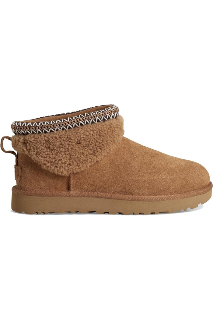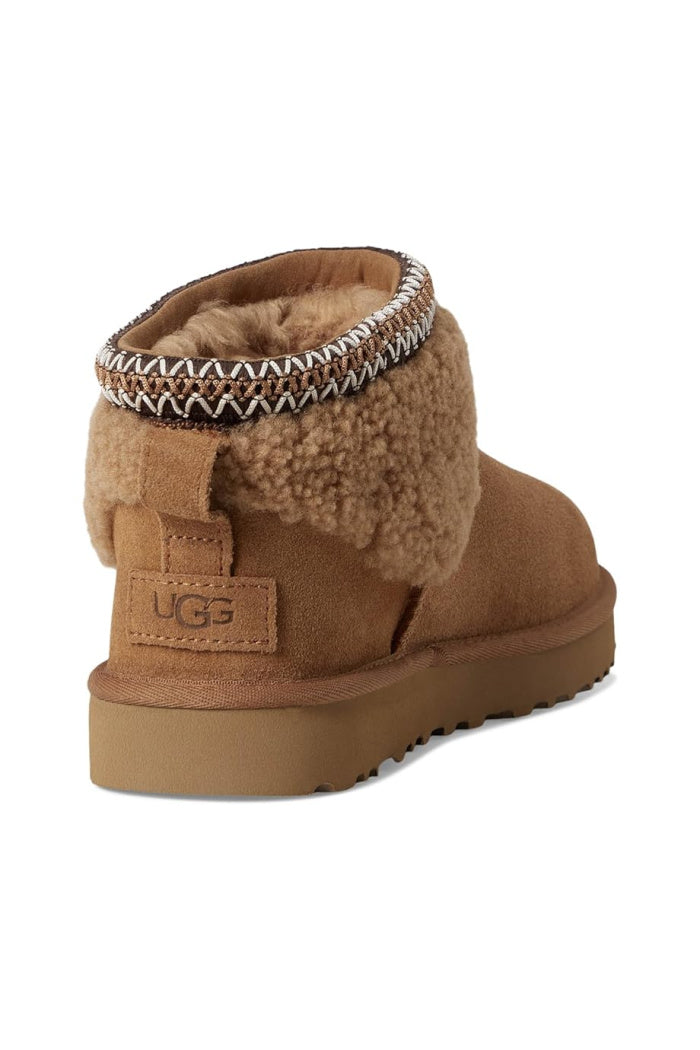 A textured take on an icon, the Classic Ultra Mini Maxi Curly rediscovers coziness with a curly sheepskin upper. Trimmed with the heritage UGGbraid™ and built upon the Classic outsole, these boots promise the same cocoon-like supreme comfort you love from UGG®.